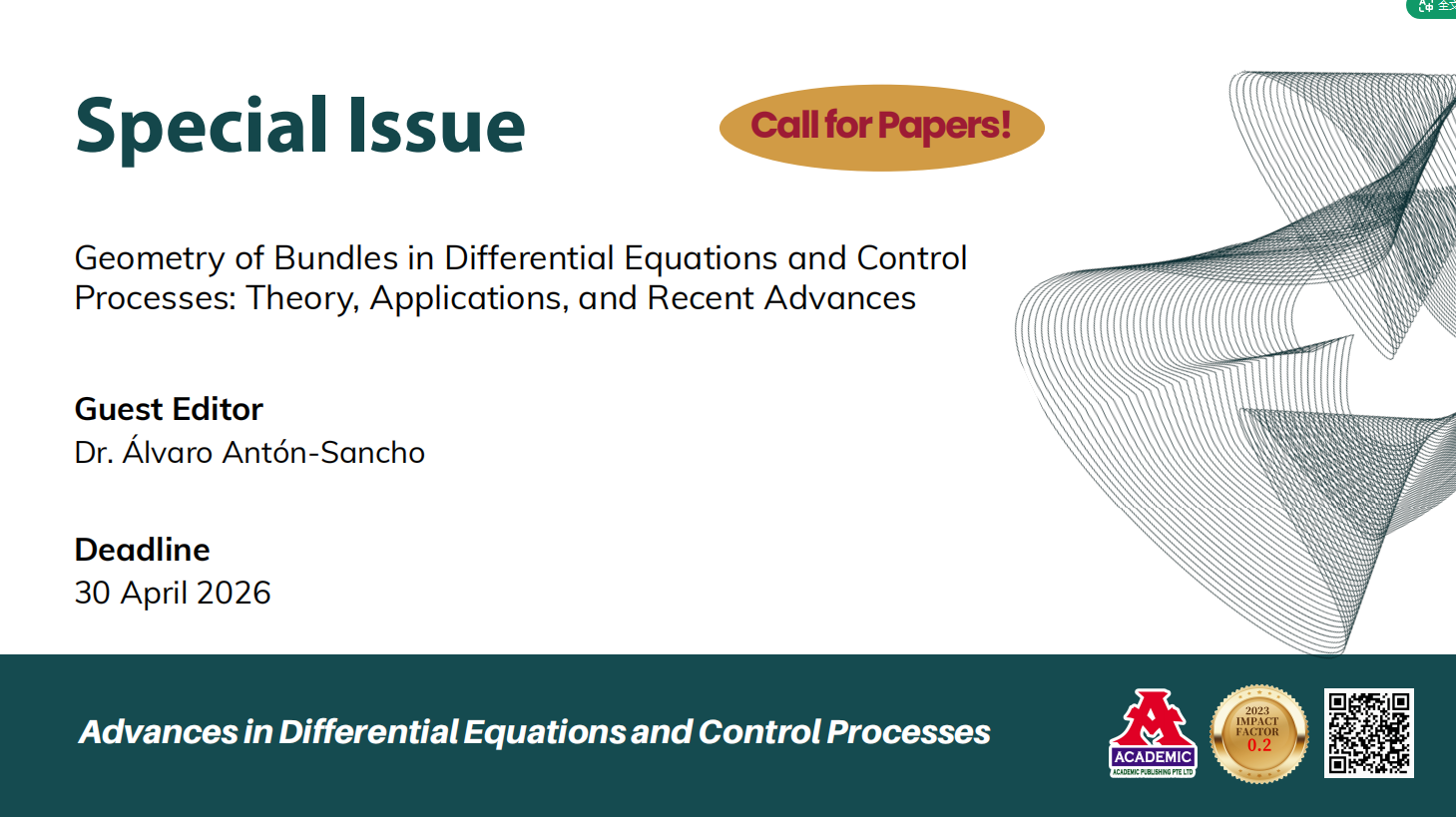 Submissions of original research articles and comprehensive reviews are encouraged, particularly those addressing novel applications or theoretical advances in the geometry of bundles and their role in differential equations and control. The goal is to highlight emerging directions, bridge conceptual gaps across disciplines, and inspire future developments in mathematics, engineering, and physics.